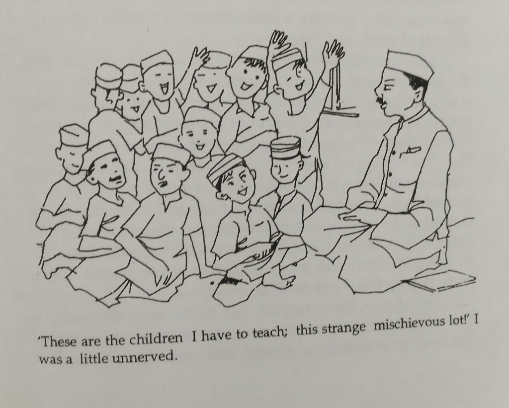 But the students had some other plans. Why would they listen to the instructions of a new teacher, specially the one who was polite and soft? They were used to loud instructions, corporal punishments etc. None of them paid attention to him. Instead they became noisy and mischievous. Some of them made catcalls, others were clapping, laughing, repeating the words, ‘Om shanti’ in a tone of mockery. The teacher was completely at a loss. He couldn’t do what other teachers or even the headmaster expected him to do, that is give corporal punishment to the students. It would have been against the very idea of education for which he had joined the school.